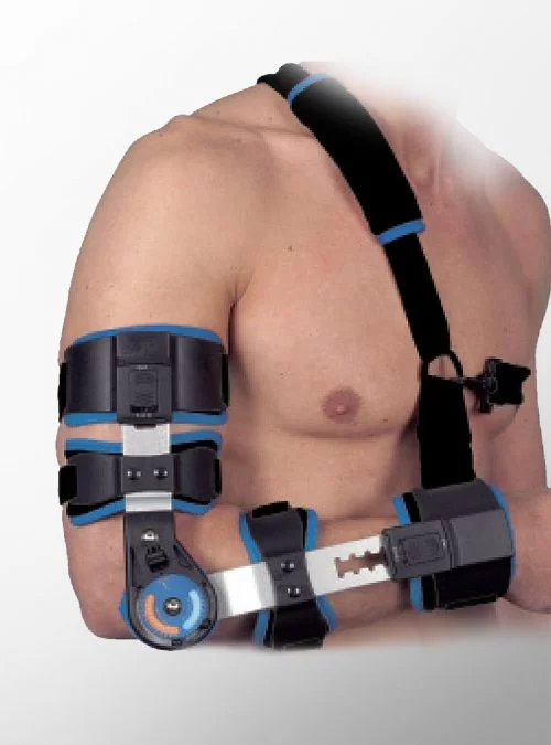 Ортопедичен телескопичен брейс за лакът с регулируем обем на движение. Подходящ за възстановяване след фрактури и увреди на лигаменти. Комфортен и надежден.