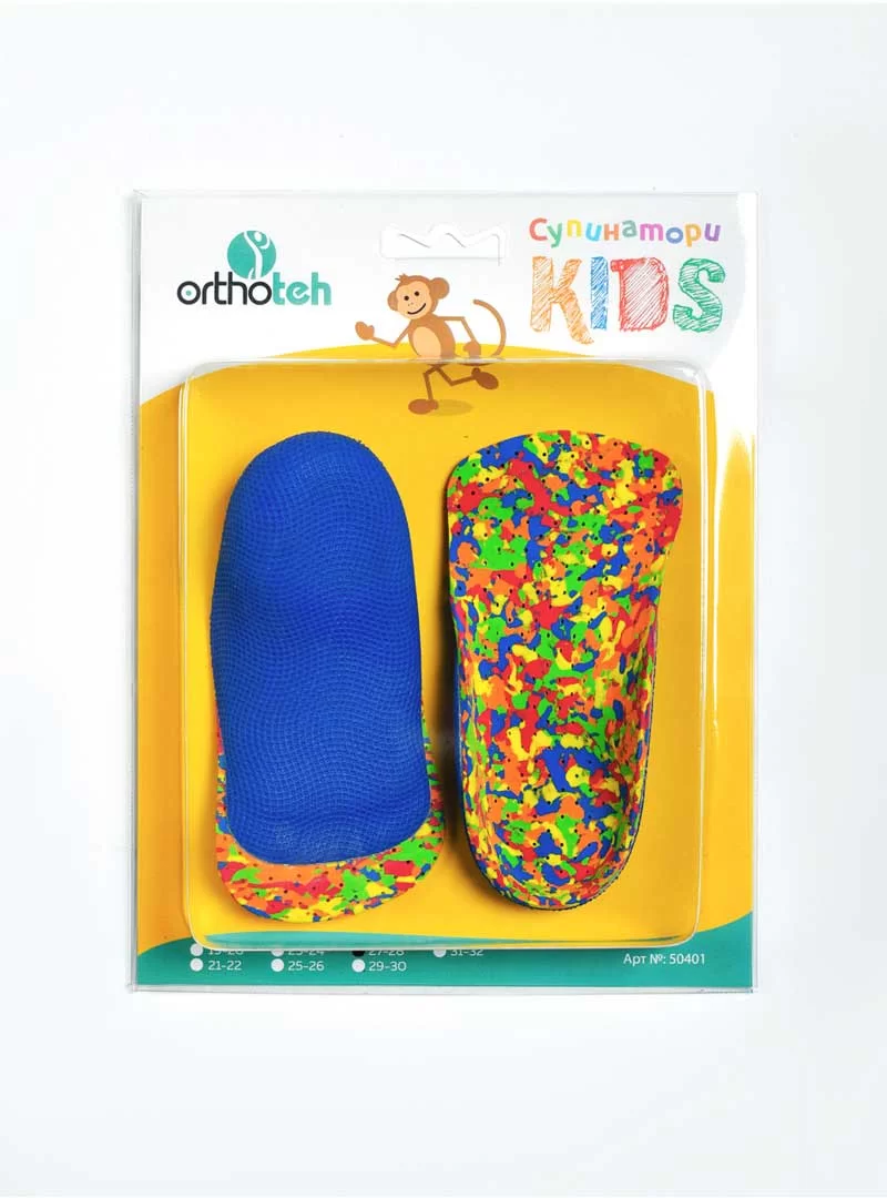 Супинатори Кидс от „Ортотех“ са създадени специално за укрепване и корекция на надлъжния свод на детските ходила. Те подобряват стабилността, задържат петите в анатомично правилна позиция и подпомагат правилното развитие на стъпалото. Подходящи са при еластично плоскостъпие, валгус на петните кости (Х-позиция на петите) или при болки в областта на ходилата.